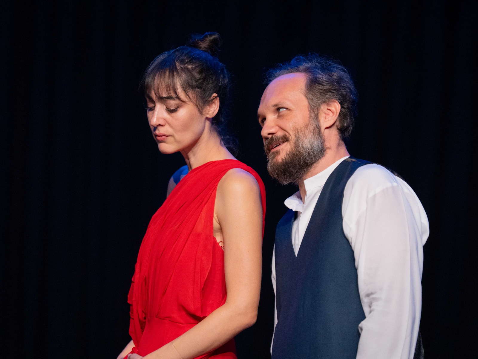 Aslına bakarsanız bilmiyorum. Ben daha önce herhangi bir oyun yönetmedim ya da uyarlamadım. İşler yönetmen ve oyuncu arasındaki farka gelince o noktada tiyatroda da sinemada da bazı hassasiyetler var. Bir oyun sahneye koymanın bir dünya yaratmak olduğunu düşünüyorum. Tabii ki sahneye koyuculukta saysız farklı yaklaşım ve üslup var. Fakat benim, adına “dünya yaratmak” diyeceğim bu çok önemli sorumluluk yönetmene ait. Her şeyi dışardan görebilen ve dünyanın tutarlı olup olmadığını tartıp dengelerini kuran kişi yönetmen. Yönetmenin, oyuncudan daha farklı bir yere konumlanan bir gözü vardır diye tahmin ediyorum. Dediğim gibi ben deneyimlemedim. Fakat öyle hissediyorum ki o püf noktanın adı benim için “ritim duygusu” olabilir. Oyunun bütün unsurlarının sahnede birbiriyle uyum içinde olup olmadığını gözleyen, bütün yaratıcı sürecin çıktısını yöneten, her şeyi bir arada tutan biri yönetmen. Bir orkestra şefi gibi enstrümanları ve müziği yönetmesi gerek; bunun için de hissetmesi. Ve o ritim duygusunu hep korumalı.