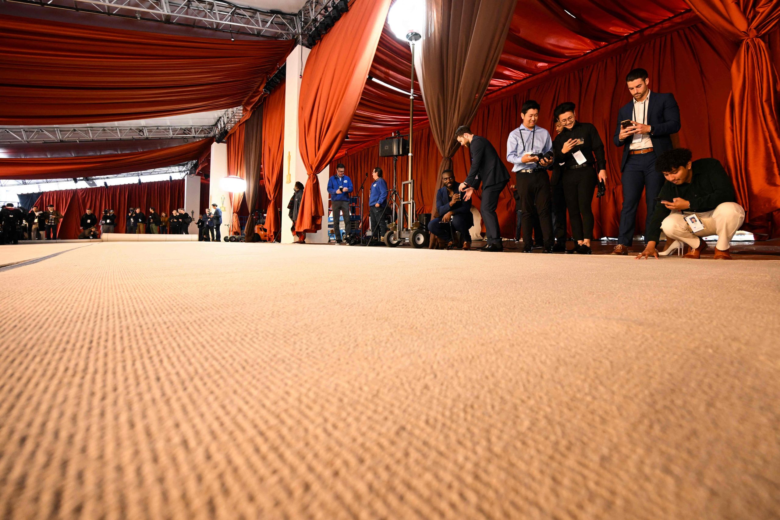 Etkinlik organizatörü Mindy Weiss, halının renginin “elbiselerle uyum göstermesi gerektiğini ve kırmızının buna uymadığını” söylüyor: “Halı, üzerinde yürüyecek olan modayı yansıtmalı, onunla çatışmamalı”. Kırmızının yerine seçilen şampanya rengini seçme sebepleriyse rengin verdiği dingin ve yumuşatıcı atmosfer olmuş. Yıllardır Oscar dahil olmak üzere birçok büyük organizasyonun halılarını üreten Event Carpet Pros. şirketinin başkanı Steve Olive de halının üretimiyle ilgili detaylar verdi. “Gelecek endüstriyel üretimin çöplüğüyle devam etmeyecek.” diyen Olive, polyester bazlı sisal türünde üretilen 5 bin metrekareye yakın halının sürdürülebilirliğe uygun malzemelerden yapıldığını ve etkinlikten sonra geri dönüştürülerek muhtemelen duvar yalıtımı ya da halı dolgusu olarak kullanılabileceğini ekledi.